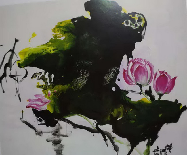 張玉馨《西觀荷塘》水墨丙稀油畫系列作品之三。