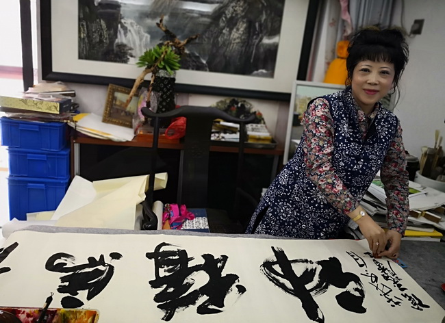 說起書法,張玉馨臉上的自信更多了一份坦然,她說,書法就是從傳統(tǒng)過來的,書到最高境界是畫,畫到最高境界是書,它們是相通的。如今的張玉馨對各種字體的書法可謂是駕輕就熟,游刃有余。“這里有我自己的東西,但我還要超越和進(jìn)步”。今天的張玉馨已經(jīng)完成了畫布上的一系列超越,變得更加淡定從容。不過,她表示,遠(yuǎn)方的路沒有終點(diǎn),她將堅(jiān)守在那塊屬于自己的“一畝三分地”上,繼續(xù)打拼自己想做的事。在屬于她的單純世界里,發(fā)現(xiàn)和創(chuàng)造藝術(shù)美成了她生活的主旋律。我們有理由期待:一直在追夢的張玉馨總能給大家不斷的驚喜!