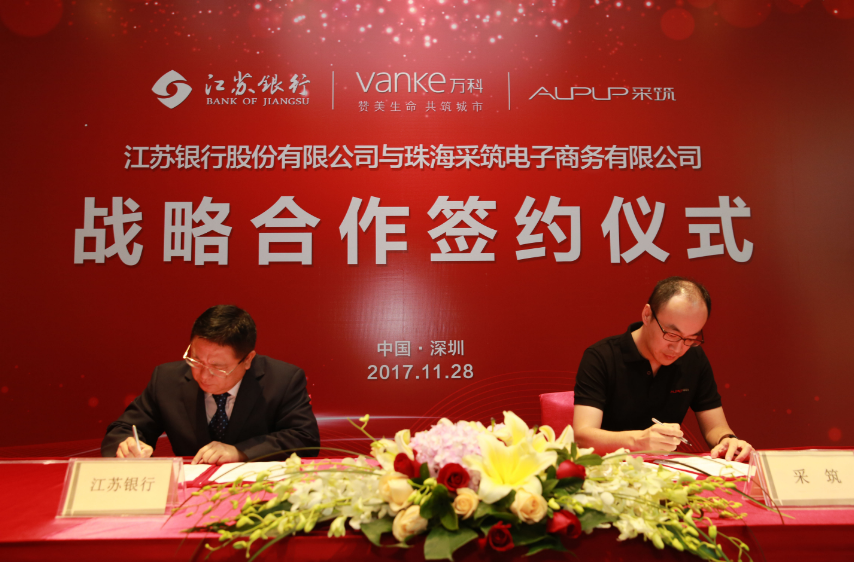 11月28日,采筑電商平臺(tái)發(fā)布會(huì)暨與江蘇銀行戰(zhàn)略合作協(xié)議簽約儀式在前海萬科國際會(huì)議中心成功舉行。萬科集團(tuán)副總裁王蘊(yùn)女士和江蘇銀行運(yùn)營總監(jiān)趙輝先生受邀出席儀式并致辭,江蘇銀行行長助理兼深圳分行行長李敏與采筑電商平臺(tái)總經(jīng)理都軍代表雙方簽署戰(zhàn)略合作協(xié)議??傂泄緲I(yè)務(wù)部周愛國總經(jīng)理、深圳分行張慶光副行長等一行出席發(fā)布會(huì)暨簽約儀式。