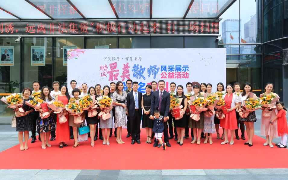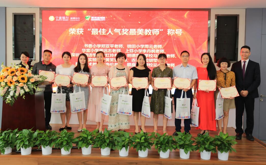 深圳新聞網(wǎng)訊 (記者朱琳江書劍)“國將興,必貴師而重傅?!崩蠋熥鳛椤白饚熤氐馈本竦谋憩F(xiàn)主體,傳道受業(yè)解惑,為社會發(fā)展不斷輸送著優(yōu)質(zhì)人才。2018年9月8日教師節(jié)前夕,由深圳新聞網(wǎng)、寧波銀行深圳分行聯(lián)合主辦的首屆“鵬城最美教師”風(fēng)采展示公益活動頒獎儀式在寧波銀行深圳分行隆重舉行。活動自2018年3月2日啟動以來,吸引了深圳市各中小學(xué)校的廣泛關(guān)注,經(jīng)過半年時間的尋找與舉薦,共有34位優(yōu)秀教師獲“鵬城最美教師”殊榮。其中有10位教師,通過網(wǎng)絡(luò)獻(xiàn)花獲得“最佳人氣獎最美教師”榮譽(yù)稱號。