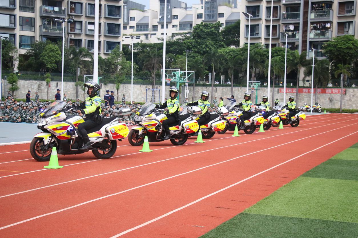 校園里,一個個身著藍(lán)色警服、頭戴白色警帽的“廣東少年交警隊”隊員隨著音樂做出各種交通手勢,帥氣、酷炫的鐵騎表演讓人意猶未盡。