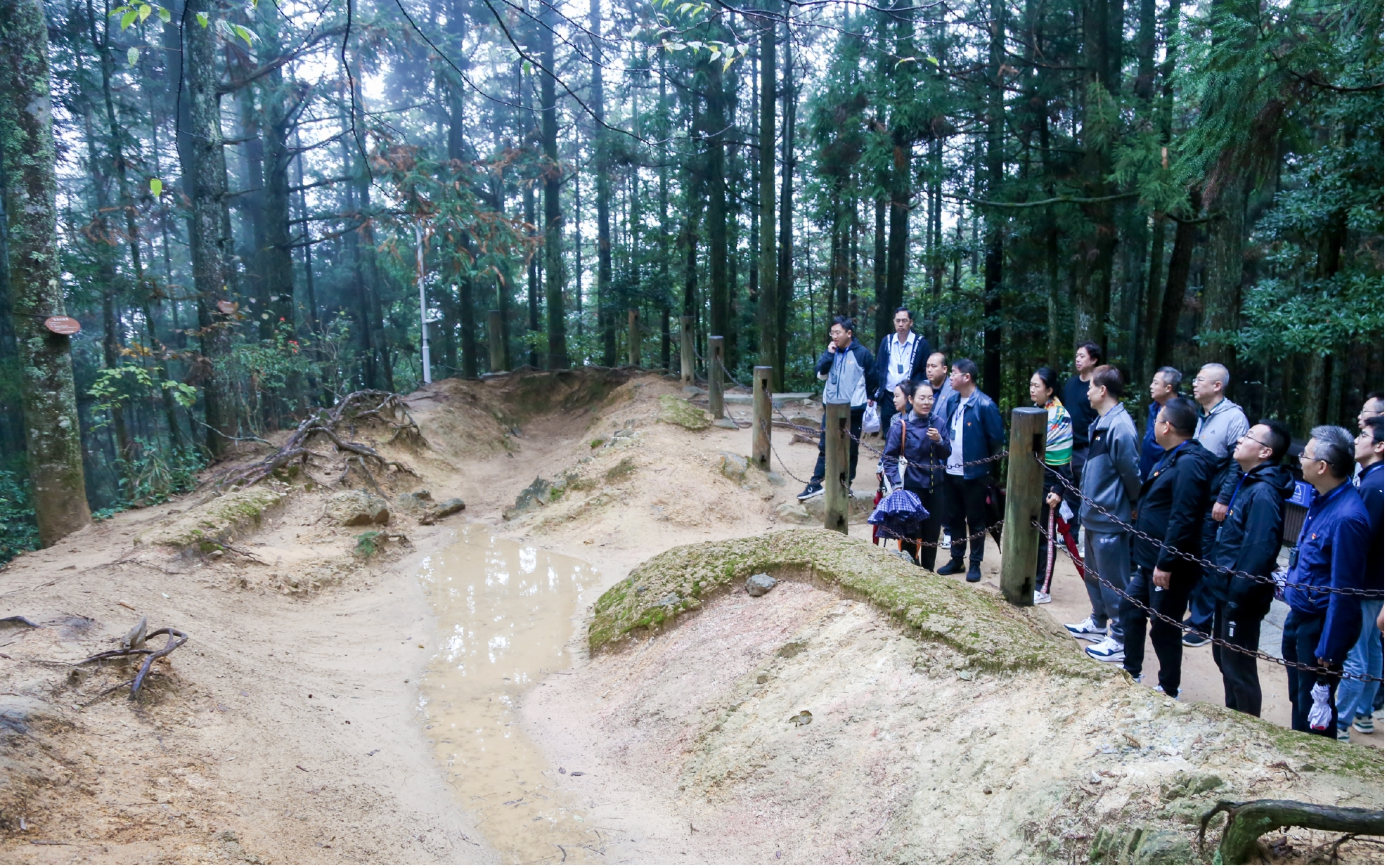 此外,全體黨員同志還來(lái)到了黃洋界紀(jì)念碑和炮臺(tái)處,眺望高聳入云的五指峰,朗誦毛澤東詩(shī)詞《西江月?井岡山》。在挑梁小道,黨員同志雖手不提,肩未挑,輕裝上陣,僅僅短暫時(shí)間,在崎嶇狹窄的山間小道,早已累得氣喘吁吁,深刻體驗(yàn)到了革命先輩為信仰與不怕困難、樂(lè)觀無(wú)畏的堅(jiān)強(qiáng)革命意志。