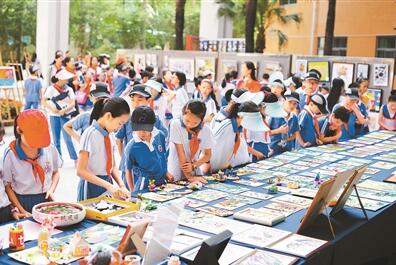 師生才藝競技場上展出的400余件精美畫作均為師生的“四點半課程”成果。