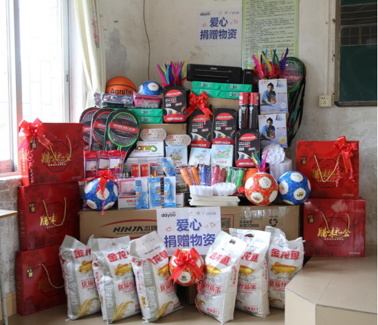在捐贈(zèng)儀式上,洋洋公益團(tuán)隊(duì)為橫槎小學(xué)的師生們送上籃球、足球、羽毛球、作業(yè)本、鉛筆、橡皮檫、文具盒、打印機(jī)等文體用品和教學(xué)用具,以及大米、臘腸等生活物資。橫槎小學(xué)謝校長(zhǎng)代表學(xué)校對(duì)愛(ài)心團(tuán)隊(duì)一行表示感謝,并將錦旗和學(xué)生用心勾勒的美術(shù)作品回贈(zèng)給碧桂園集團(tuán)廣清區(qū)域、廣州日?qǐng)?bào)大洋網(wǎng)等愛(ài)心代表。