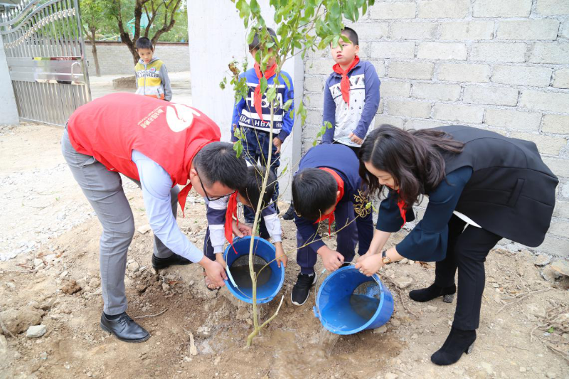 播種希望的幼苗,為綠色公益助力。在“愛(ài)心植樹(shù)林”活動(dòng)環(huán)節(jié),孩子們懂事地幫公益團(tuán)隊(duì)夯土、扶樹(shù)苗、澆水,一起種下代表愛(ài)心的樹(shù)苗,也讓這份溫暖通過(guò)愛(ài)心樹(shù)苗繼續(xù)傳遞下去。下午課間活動(dòng)時(shí),孩子們拿著嶄新的籃球、足球、跳繩,歡快地同小伙伴一起玩耍,歡笑聲瞬間洋溢在校園里。