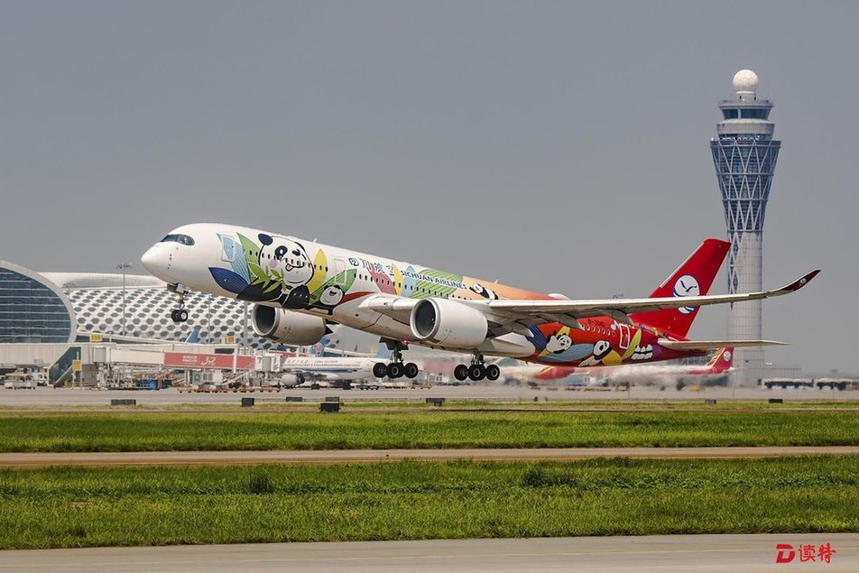 原標(biāo)題:川航A350飛機(jī)首秀深圳 “熊貓彩繪”驚艷深圳機(jī)場(chǎng)