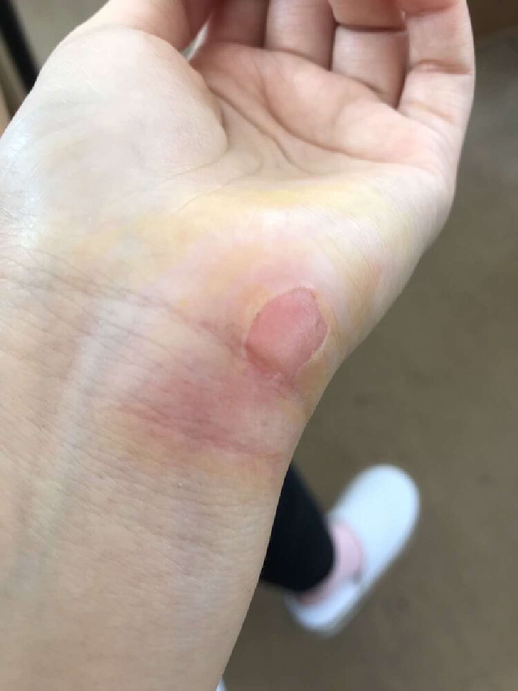 因?yàn)楝F(xiàn)場忙著搶救,持續(xù)的心臟按壓讓孫學(xué)迪的手破了皮,她到搶救結(jié)束才發(fā)現(xiàn)手上的傷口。