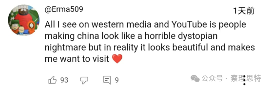 在YouTube上,“單槍匹馬摧毀了所有的反華努力,這太神奇了”“中國被低估了,簡直難以置信”“這次旅行是中國有史以來最好的宣傳”“在我看來深圳是中國最好的城市。有邁阿密的天氣、空氣和景觀,有紐約的摩天大樓,有上海的國際氛圍,有重慶的科技和賽博朋克美學(xué),還帶點(diǎn)廣東味”這樣的感嘆不勝枚舉。