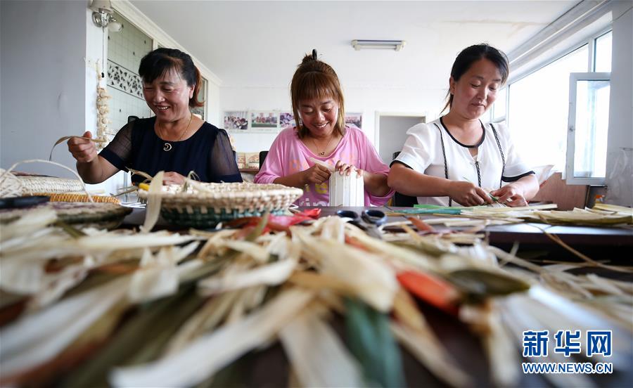 8月12日,參加草編合作社的村民使用稻草稈和玉米棒葉編制草編工藝品。近年來,吉林省洮南市福順鎮(zhèn)春華村在脫貧攻堅工作中堅持以特色產(chǎn)業(yè)扶貧為重點,推動稻田養(yǎng)蟹特色種養(yǎng)殖、手工藝草編等扶貧項目發(fā)展,通過合作社等形式構(gòu)建精準防返貧長效機制,幫助困難群眾實現(xiàn)穩(wěn)定增收。新華社記者 雒圓 攝