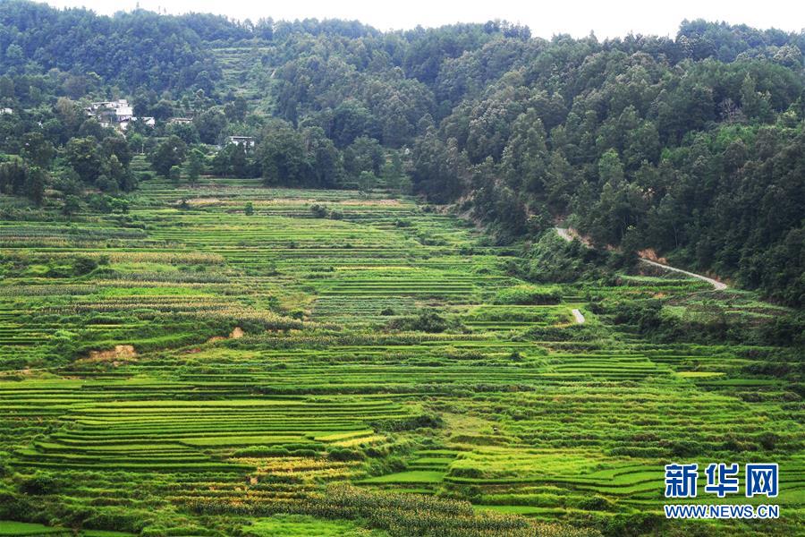 這是8月13日拍攝的鞍子鎮(zhèn)大林村梯田景色。時(shí)下,重慶市彭水苗族土家族自治縣鞍子鎮(zhèn)大林村的梯田景色迷人,構(gòu)成一幅幅山鄉(xiāng)田園美景。新華社記者王全超攝