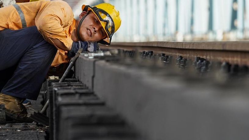 今年28歲的郭繼浩和班組其他9名工友主要負(fù)責(zé)南京長(zhǎng)江大橋鐵路橋梁設(shè)備的日常巡查、養(yǎng)修和臨時(shí)性搶修等工作。