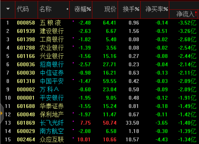 科技股獲得資金青睞,金融、消費資金流出明顯。