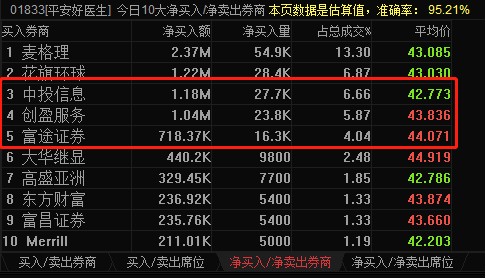 整體而言,中投信息、創(chuàng)盈服務(wù)、富途證券三大聯(lián)席券商合計凈買入平安好醫(yī)生約300萬港元,占其全天成交額的17%,內(nèi)地資金一下已經(jīng)成為該股的主要參與者。