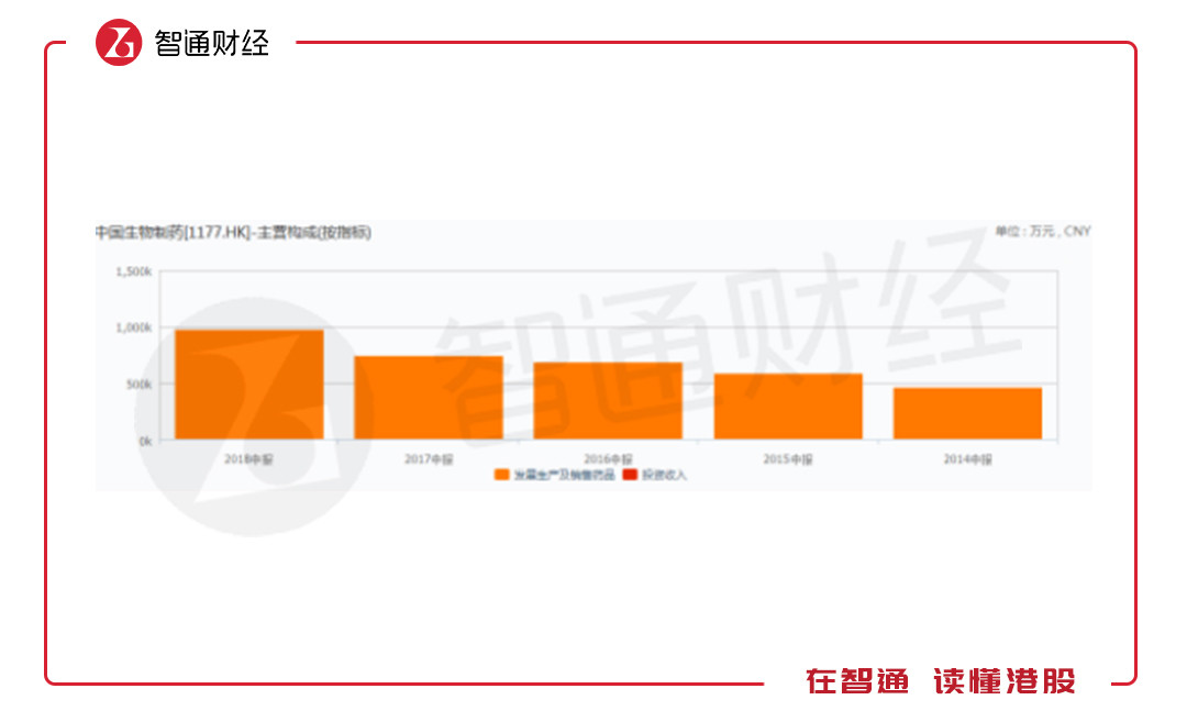 再說(shuō)中國(guó)生物制藥,2018年中期的收入是97.25億,同比增長(zhǎng)30%;歸屬于母公司持有者應(yīng)占盈利約13.66億,同比增長(zhǎng)24.1%。期間計(jì)入權(quán)益投資和金融資產(chǎn)未實(shí)現(xiàn)公允價(jià)值利潤(rùn)及虧損和海外匯兌差異凈額前,歸屬于母公司持有者應(yīng)占盈利約14.27億元,較去年同期增長(zhǎng)約41.9%。