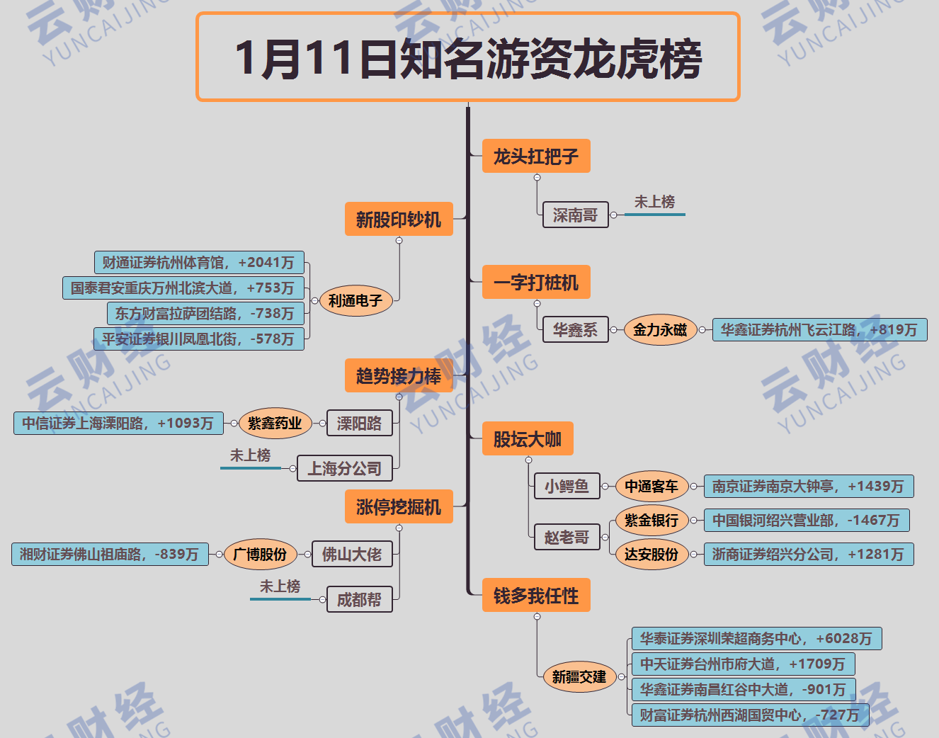 其他游資方面,趙老哥買入達(dá)安股份(300635)1281萬賣出紫金銀行(601860)1467萬,小鱷魚買入中通客車(000957)1439萬,佛山幫賣出廣博股份(002103)839萬。