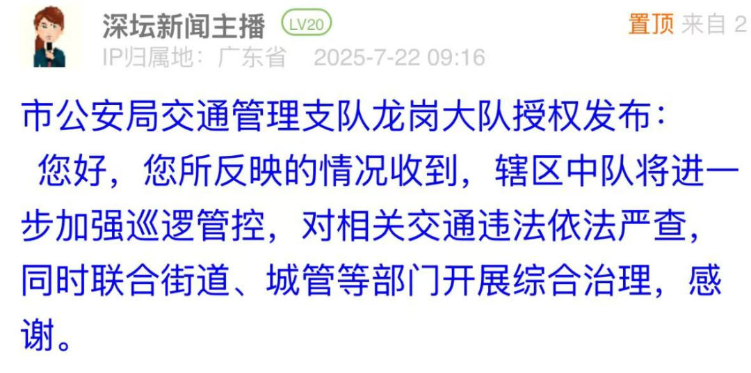 案例點(diǎn)評(píng):對(duì)于市民反映的路面油污問題,布吉街道辦立即安排環(huán)衛(wèi)部門進(jìn)行清洗,并于第二日在問政帖文下進(jìn)行回復(fù),以現(xiàn)場(chǎng)圖片展示路面清理效果,表示將加強(qiáng)后續(xù)巡查。此次處置展現(xiàn)了基層部門高效務(wù)實(shí)的問題處理能力,為城市道路環(huán)境管理提供了快速響應(yīng)與長(zhǎng)效維護(hù)相結(jié)合的實(shí)踐范例,切實(shí)回應(yīng)了市民對(duì)潔凈環(huán)境的期待。